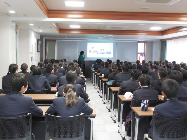 今後中学2年生は4月の立志合宿に向けて取り組む予定です。なりたいものやありたい姿についてじっくり考え、「立志の誓い」として宣言するにあたって、親しみやすいお人柄やさらなる夢を語られた永田様の講話は生徒のエネルギーになったことでしょう。永田様、ありがとうございました。