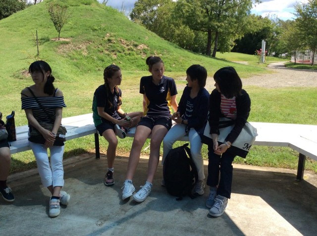 午後は、体育の授業に参加して、バレーやサッカー、クリケットをやりました。サッカーで、ヒルズの生徒 対 開誠館の生徒で試合をして、勝ったのですごく喜んでいました。また、英語の教科書等にも出てくるクリケットを実際にやることができて、嬉しかったようです。