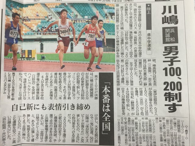 ※7月3日(日)静岡新聞にて川嶋君の記事が掲載されました。