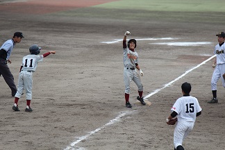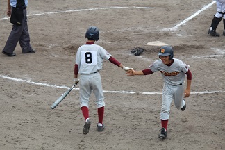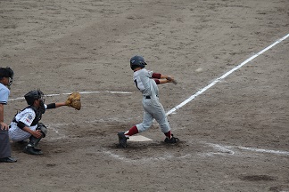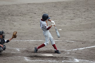4回表、開誠館の攻撃。一死二塁から一番増谷(二年:浜松東小出身)が左中間を破る先制三塁打を放った。続く二番佐藤(二年:芳川小出身)の時にスクイズを決め、このイニングに奪った二点をリードしたまま逃げ切った。