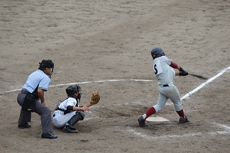 完勝という内容だったが、実は大切なプレーが二つあった。浜北北部は少ないチャンスを生かそうと二度ほど盗塁を仕掛けてきたが捕手の増田が素早く正確な送球をし相手のチャンスの芽を摘んだ。点数が取れそうで取れないという嫌な流れの中で相手にチャンスの芽を広げられたら何が起こるかわからなかった。増田は決して強肩ではない。しかし、スローイングが正確で捕ってから素早く送球ができる。捕手のスローイングで大事なことは正確さ、速さ、強さの順だ。強さばかり目がいって、盗塁できる、できないを判断する人がいると思うが、いくら強くてもベースから送球がそれればアウトにすることが難しくなる。もちろん、投手との連携も必要だが、増田はスローイングで大切な要素を二つも持っており、盗塁がしにくい捕手だ。この試合、表のヒーローが増谷なら、影のヒーローは増田だと私は思う。
