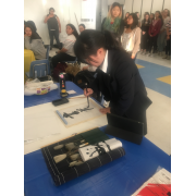 そして、本校の鈴木彩日先生による書道パフォーマンス、プレゼント交換、校歌披露を行いました。 そして、いよいよ別れの時です。朝はお互いに緊張していて表情も硬かったですが、最後はハグをしたり、肩を組んだりして写真を撮っていました。