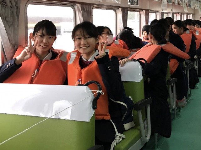 船内の資料が写らないように頑張って生徒たちを撮影。