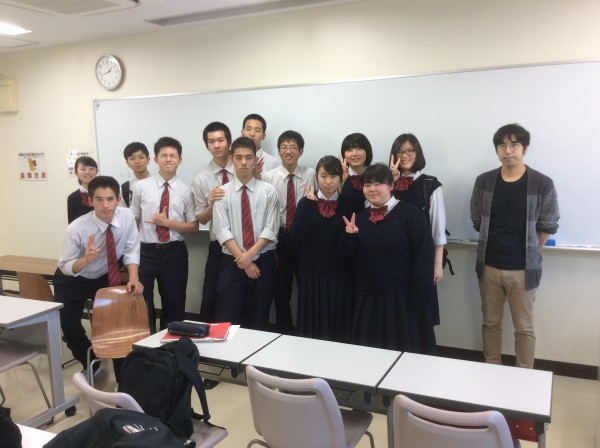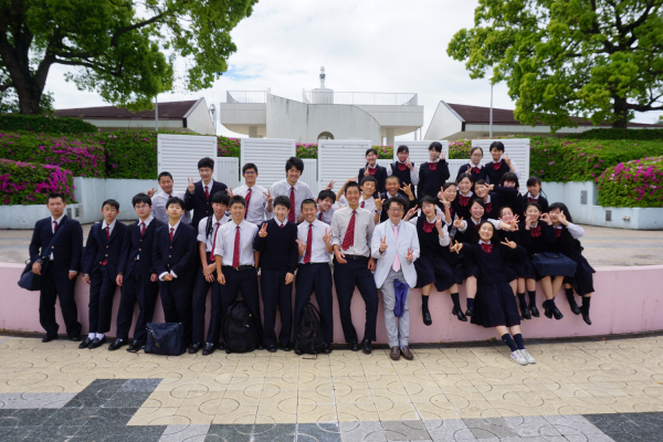 堅尾学部次長先生より学部の規模や活動、特色等について説明を受け、質疑応答の時間には学級担任のシュミット教諭をはじめ、グローバルコミュニケーション育成に向けての方策や今後の課題、現在の交換留学の取り組みの可能性などをシェアしました。