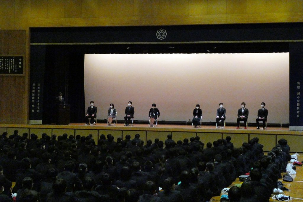 全校表彰の後、髙橋校長より1年間の学びを振り返りながら、自分の人生を主体的に歩むために学び続けることの意義について講話がありました。