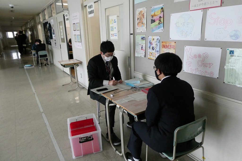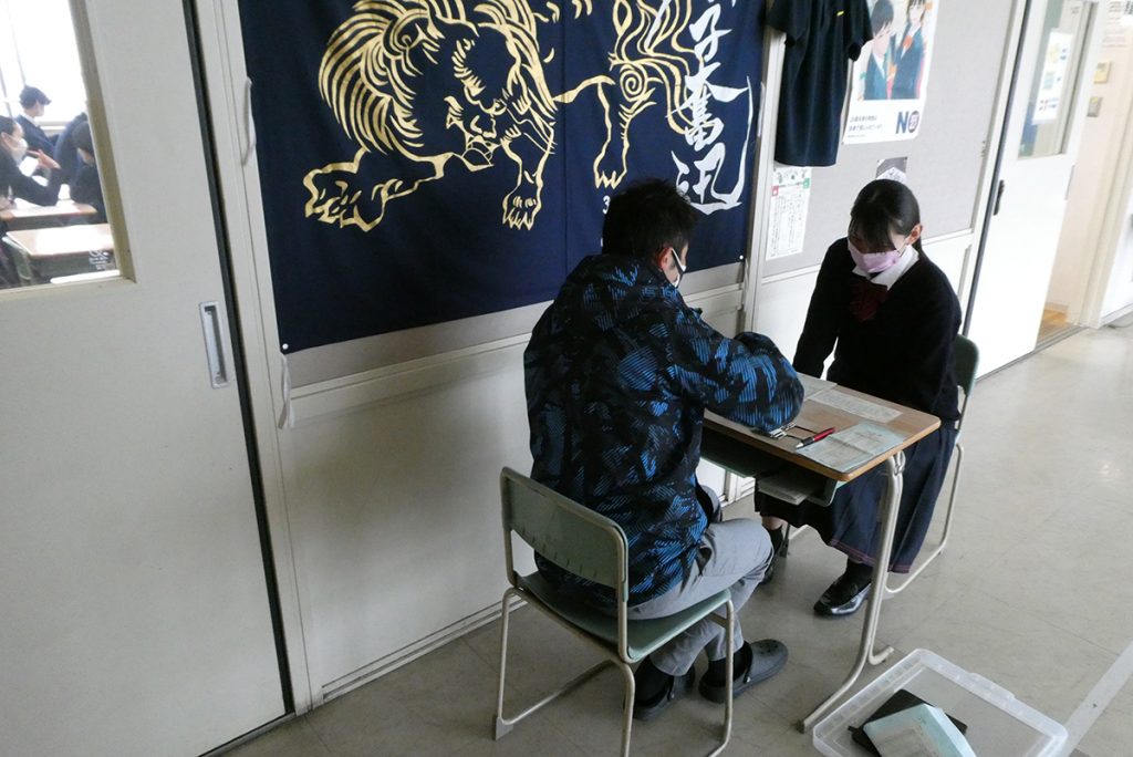 教室では、各クラスで面談を行いながら、学年末の成績表を手渡ししました。