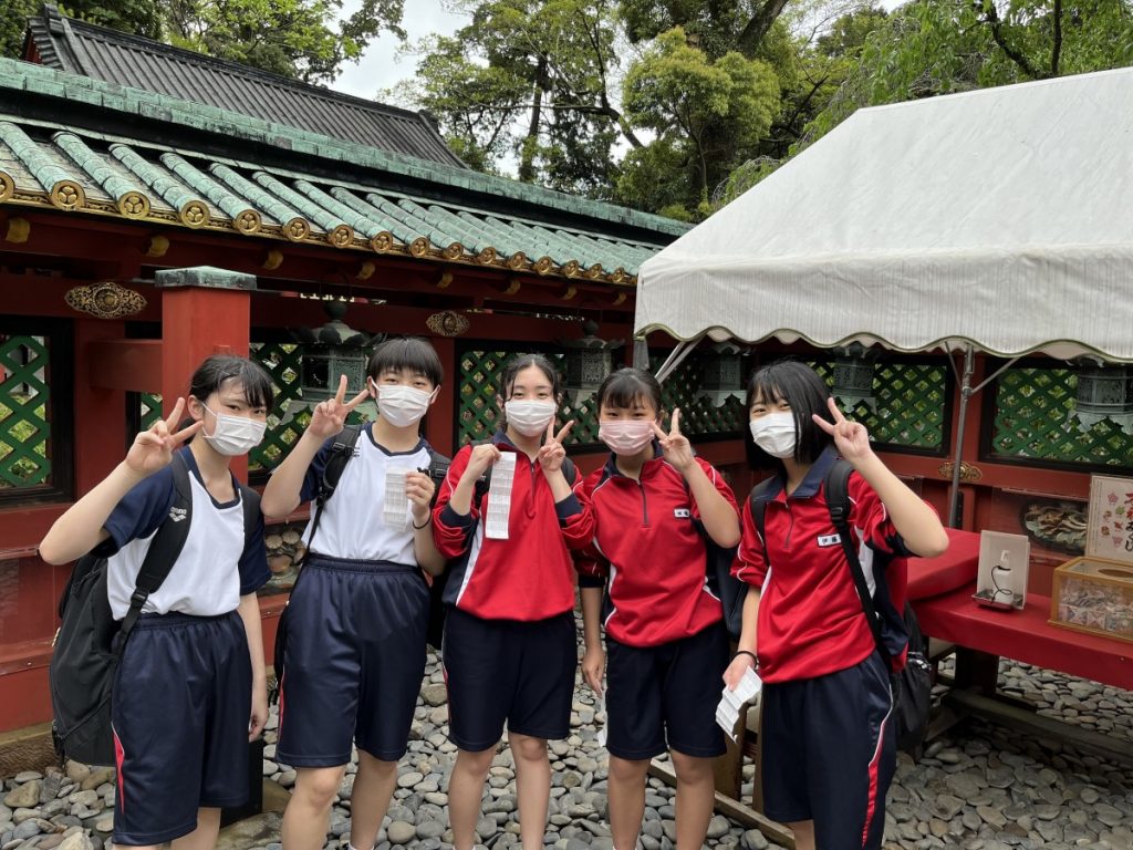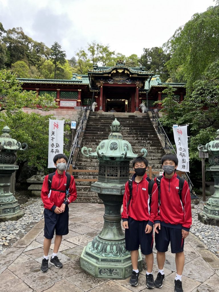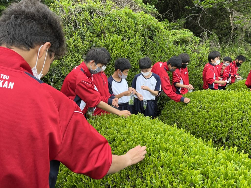 雨が心配される中でしたが、中学2年生は「日本を知る」を目的とした活動を実施しました。その一貫として、久能山東照宮、日本平お茶会館でお茶摘み体験を行いました。