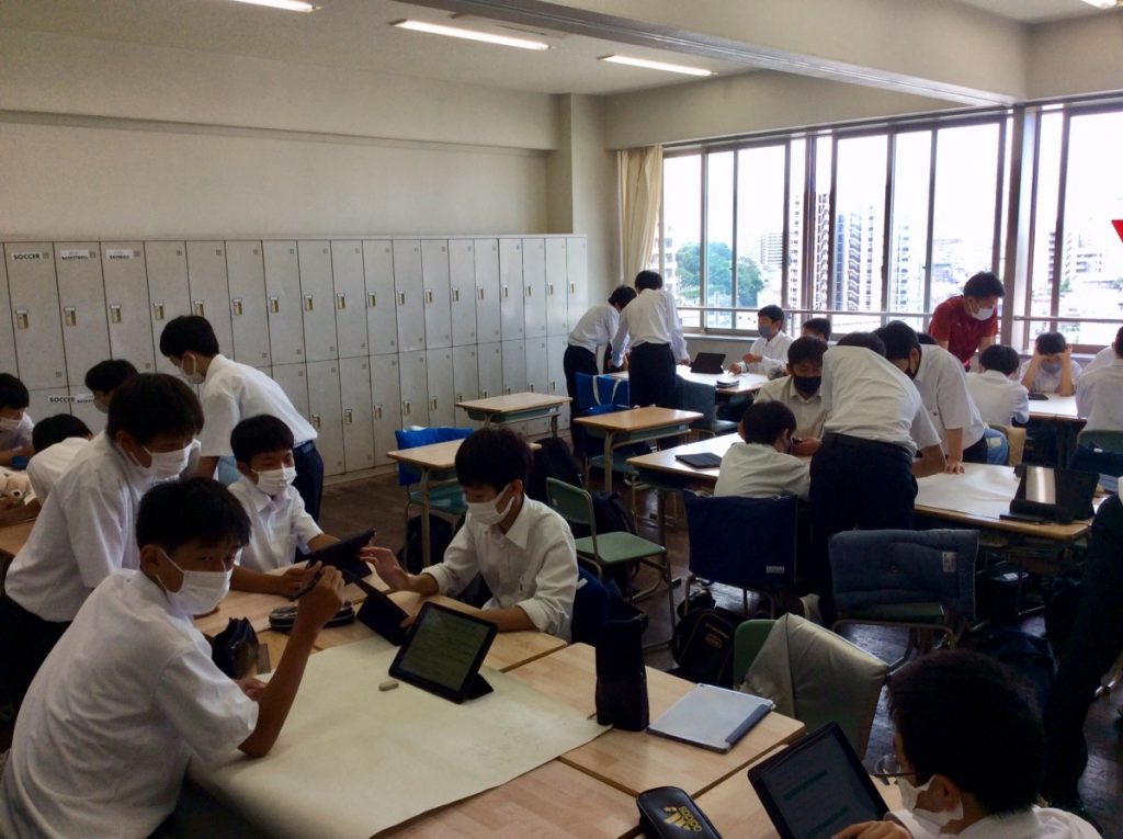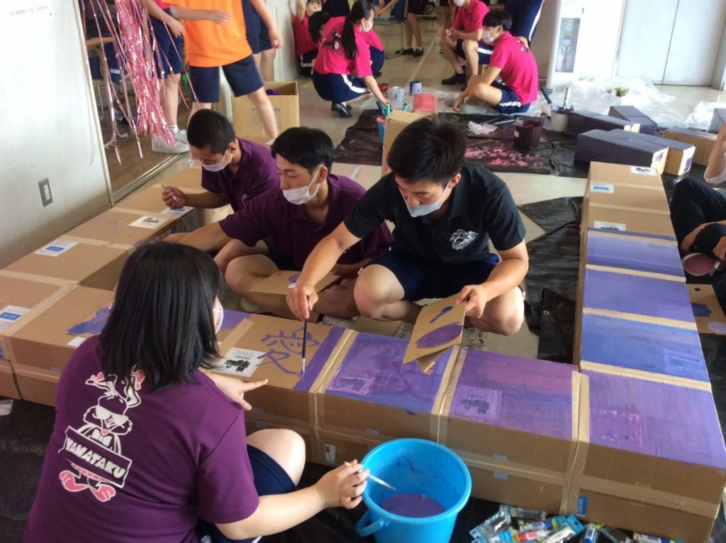 明日の真澄祭に向けて中学生、高校生がクラスや学年で協力しながら作業を行っていました。