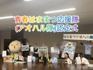 このたび、SDGs部は浜松市より青春はままつ応援隊(アオハル隊)に3期連続で認定されました。この制度は、浜松市内の地域の文化、自然環境等の魅力にターゲットを当て、企画制作・情報発信する活動を行う高校生の団体を市が応援し、若者の活力で浜松市を盛り上げようとするものです。
