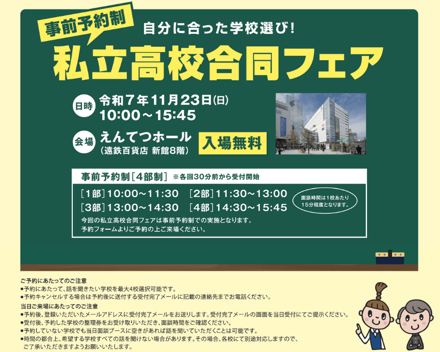 「2025私立高校合同フェア」(事前予約制)のご案内(11/23・日)