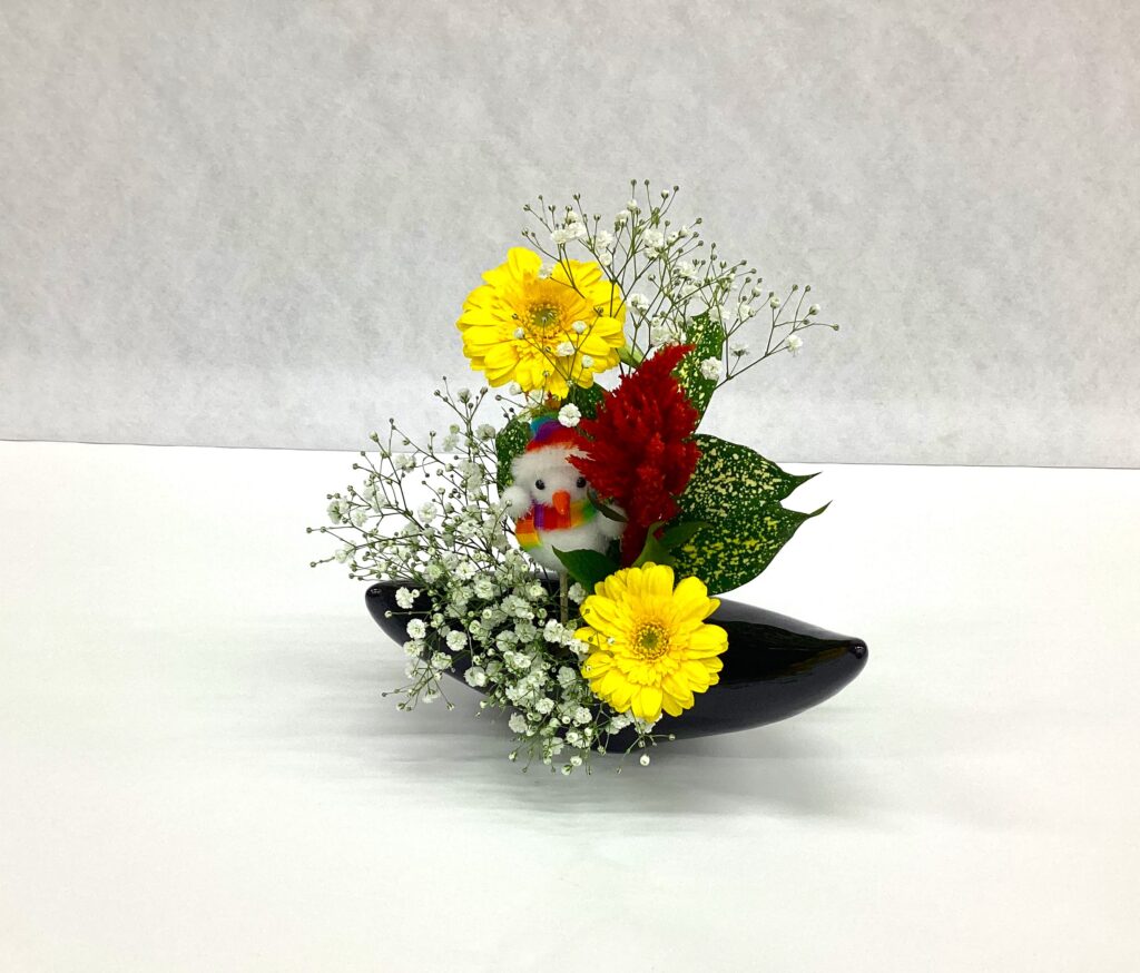 12月5日(金)のお稽古では、ひと足早くクリスマスの気配を感じる作品を生けました。赤や緑の彩りが自然と心を弾ませてくれて、花材を手に取るたびに季節の楽しさが広がっていくようでした。ぜひ、作品からもクリスマスの空気を感じていただけたら嬉しいです。