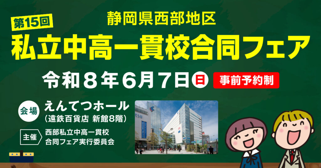 浜松開誠館中学校・高等学校は、静岡県西部地区の私学が一堂に会する私立中高一貫校合同フェアに参加いたします。
