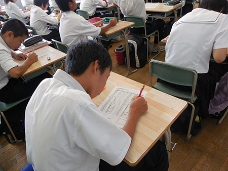 下の写真は中学生ですが、大会を終えた部活動の生徒も、これから全国大会を控えている生徒も、教室で学習します。クラスメイトが久しぶりに顔を合わせる機会でもあります。