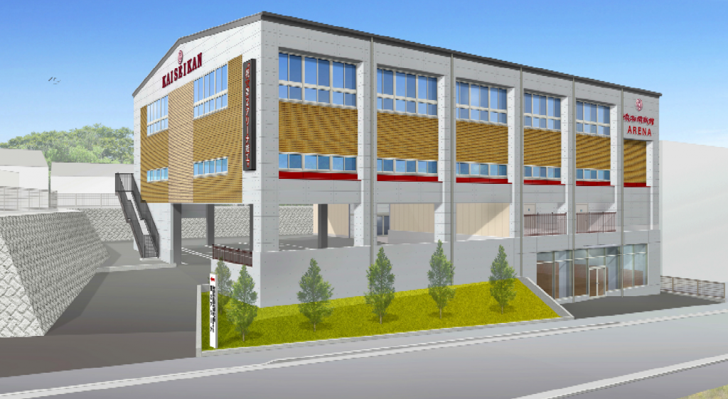 完成すると地下1階・地上2階建、建設面積840㎡、延床面積約2000㎡、地下も含めた高さは約17mの建物となり、キャンパスの拡充により一層生徒の活発な活動が期待されます。