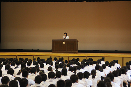 終業式は中学・高校合同の全校で行いましたが、高校3年生は高校野球3回戦の応援のために不在でした。