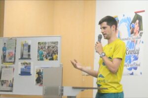 日頃の学習の成果をお互いに鑑賞します。ステージ発表では、英語による暗唱やミニドラマ、作文の発表、合唱などを行います。中学合唱コンクールは40年以上続いている伝統行事です。
