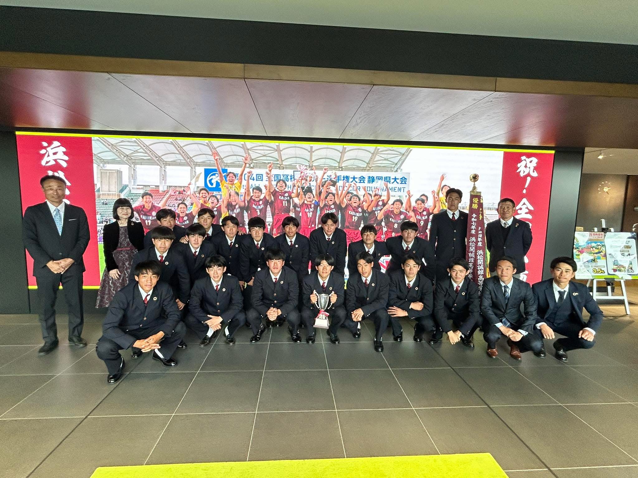 去る11月15日、IAIスタジアム日本平で実施されました令和7年度第104回全国高等学校サッカー選手権静岡県大会決勝で本校サッカー部が勝利し、3年ぶり3回目の優勝をいたしました。この結果、夏のインターハイ静岡県大会優勝に続き創部初の県2冠を達成し、冬の風物詩のひとつでもあります全国高等学校サッカー選手権大会へ出場することになりました。