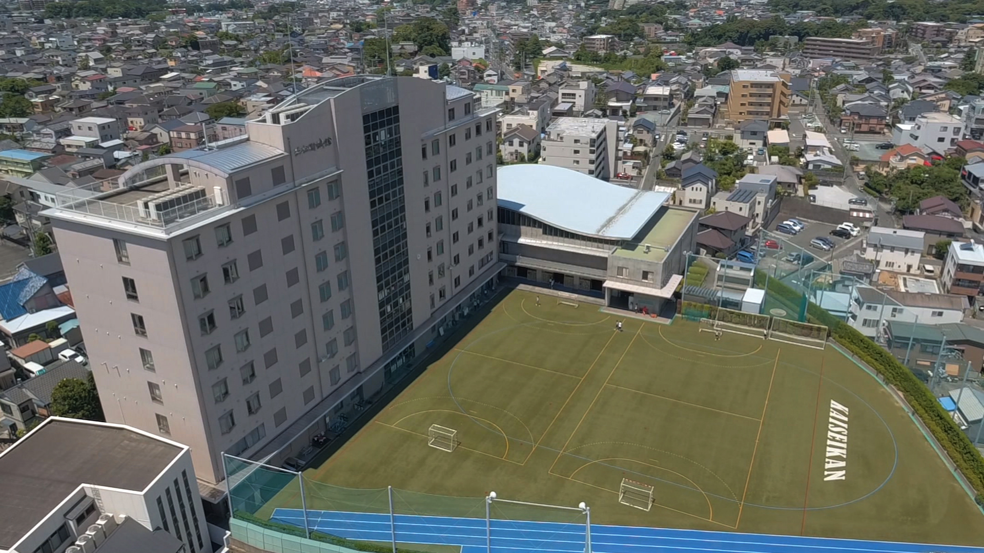 やる気と自主性を引き出す地上9階建ての都市型キャンパスです。北には南アルプスから富士山を望み、南には穏やかな曲線を描く太平洋を見渡す、明るく開放的な学習環境です。また、冷暖房・シャワー付洋式トイレを完備し、個人ロッカーをすべての普通教室に配置するなど、快適に勉学に励む雰囲気をつくり、充実した学校生活をサポートしています。校庭(人工芝グラウンド)のほか、巨大なフォルムのアリーナ棟、最新の設備のアリーナⅡ、また野球場と多目的グラウンドを兼ね備えた広大な総合グラウンドが、それぞれ整備されています。